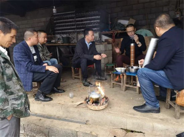 阴雨之下,天气湿冷,初制所的普昌平师傅端来火盆,送上核桃仁和蜂蜜。烧上一壶开水,边聊官寨古茶园情况,边品当地原产好茶。一饮复饮,汤色良佳,茶气充足,口感温润,甘滋漫肠,余味深长,美中不足的是工艺不够精良。