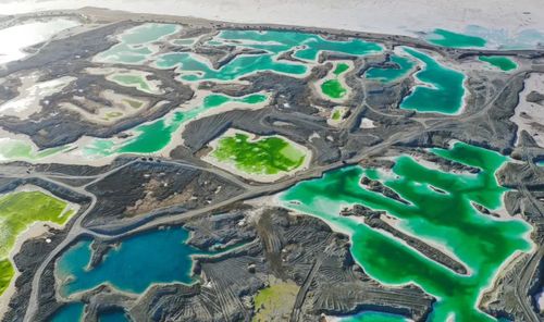 茫崖翡翠湖宛若镜面般散布在四处。