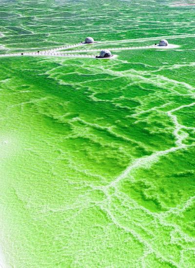 而且,这里的水是湛蓝色的与大海无差别,仿佛跨越了时空和时间的束缚,宛若来到了外星世界。