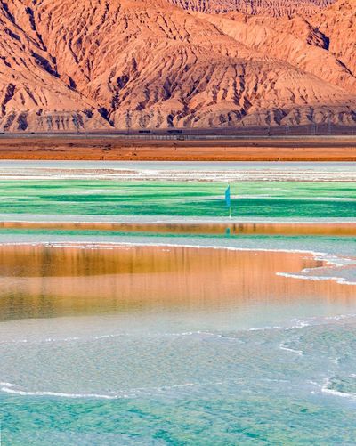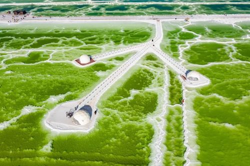 通过盐湖的青藏公路和青藏铁路,路基全是用盐铺成,全长32千米,分别被称为万丈盐桥和钢铁彩虹。