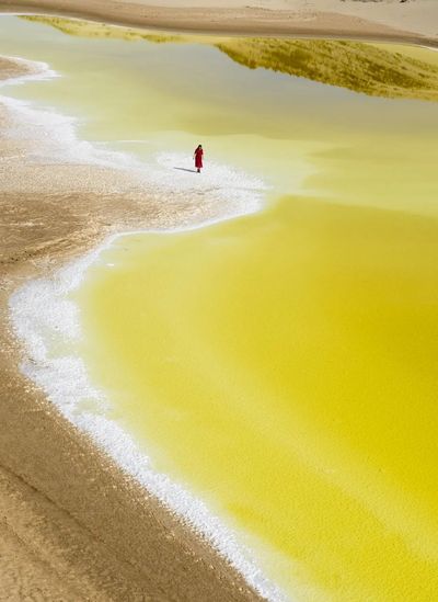 硫磺湖是青海唯一一个黄色的盐湖。