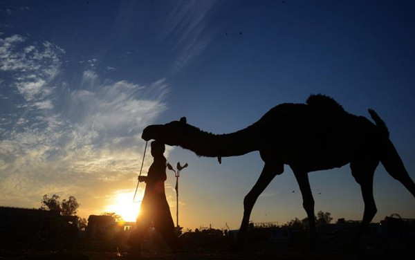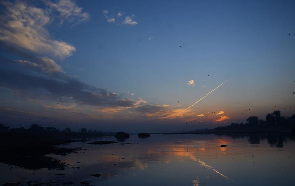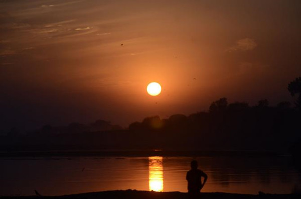 巴基斯坦:拉维河上空现醉人夕阳 暮色下剪影美如画