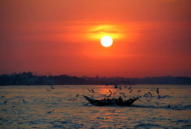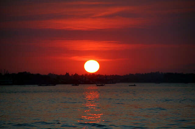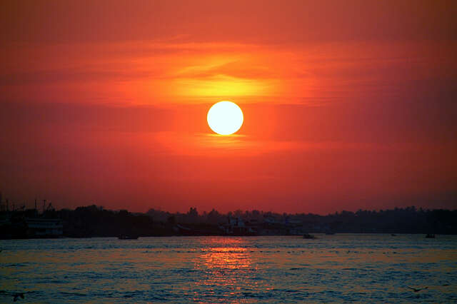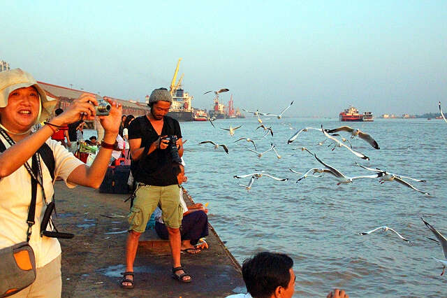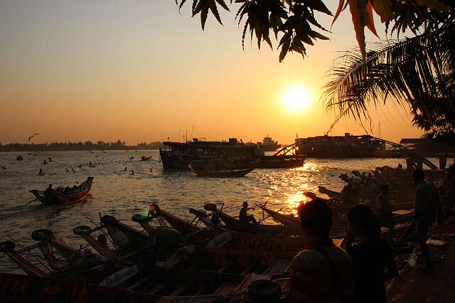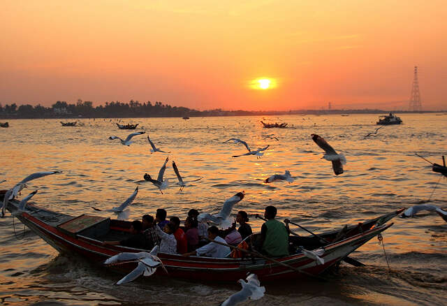 童年时见过仰光江这么美的夕阳景色,海鸥在尽情的飞翔,很怀念我的第二故乡。