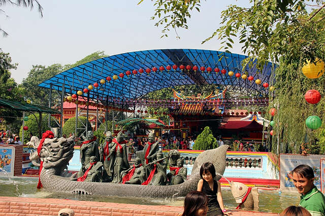 019仰光动物园去年龙年添设一条八米长的木雕中国龙,今年是小龙年,不少人都会在此拍照留影