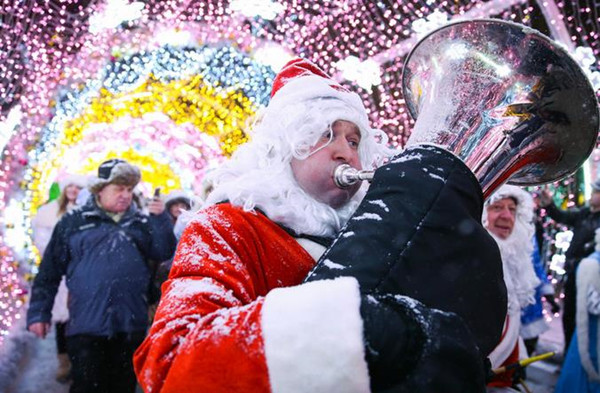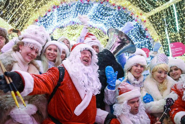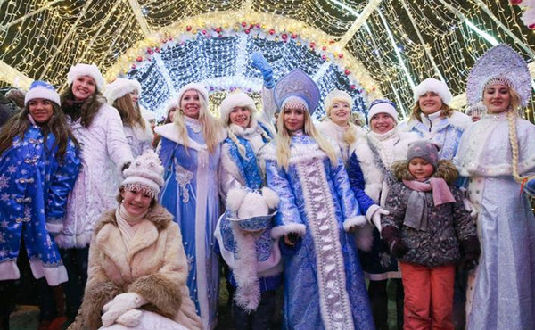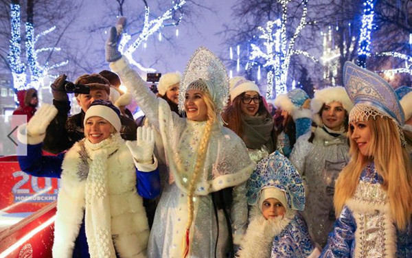 当地时间2017年1月12日,俄罗斯莫斯科,当地举行雪姑娘游行,庆祝俄历圣诞节。