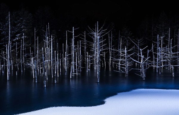另一张展现的是捷克厄尔士山脉上冬天的山毛榉林。照片分为左右两边,左边山毛榉的树干上爬着一条蜿蜒的“白蛇”,树叶却色彩艳丽,展现着蓬勃的生命力,而右边的树林则被白雪覆盖,如隐云端,有一种飘飘渺渺的感觉,令人如临仙境。
