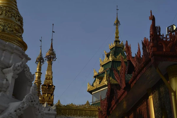 在仰光,尽管大金塔是唯一的高度,也是最大的规模,可是,在这座城市中还有很多佛塔,还有很多散发出耀眼的金色光芒。然而,到了仰光,大金塔好像是必须去的地方,因为它是这座城市的标志,在这座城市的不同角度都能够看到它不同一般的巍峨以及熠熠生辉。大金塔与这座城市的共存已经有了600年,而它的始建则在公元前六世纪。因此,历史悠久是它的骄傲,超大规模是它的自豪。当人们来到这里,走到这个制高点上的时候,回望那拾阶而上的过程和感觉,一定会发现那是一种难以省略的时间和精力,因为每一步台阶都是默默的还愿,都是对佛的念想。这种充满对佛的敬仰和膜拜的过程,应该是和佛塔相关联的内容,如同给佛塔贴金表达心情一样。人们络绎不绝地来到这里参拜,就是想把自己的心愿告诉佛塔,告知自己内心的祈祷。而当大金塔修建了观光电梯,乘电梯很快就可以直达顶部,却消解了这样一种需要体力、需要时间、需要默默祈祷的中间过程,而失去了这样的过程,人们也就在参拜中失去了相应的内容。无疑,参拜的过程非常重要,它是礼仪的一个部分。因此,当观光客乘电梯直达顶部的时候,那些信徒们依然默默的在一步一个台阶的走向他们心中的金塔。