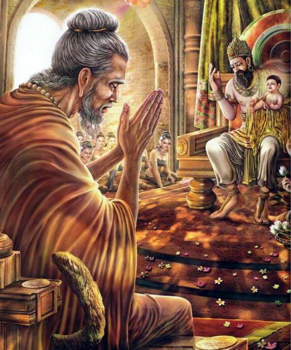 3命名大典:佛陀以转轮圣王的身份降生人间,佛陀的父亲净饭王非常地疼爱自己的儿子。佛陀被命名为:乔达摩.悉达多。