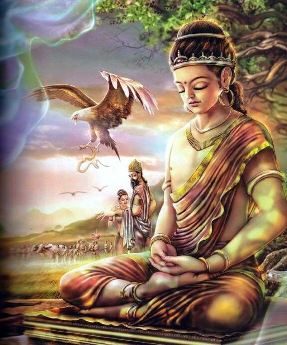 5得入四禅:太子见老鹰捕食蛇,心生悲悯,观察到众生的苦恼,而入禅定,得入四禅。