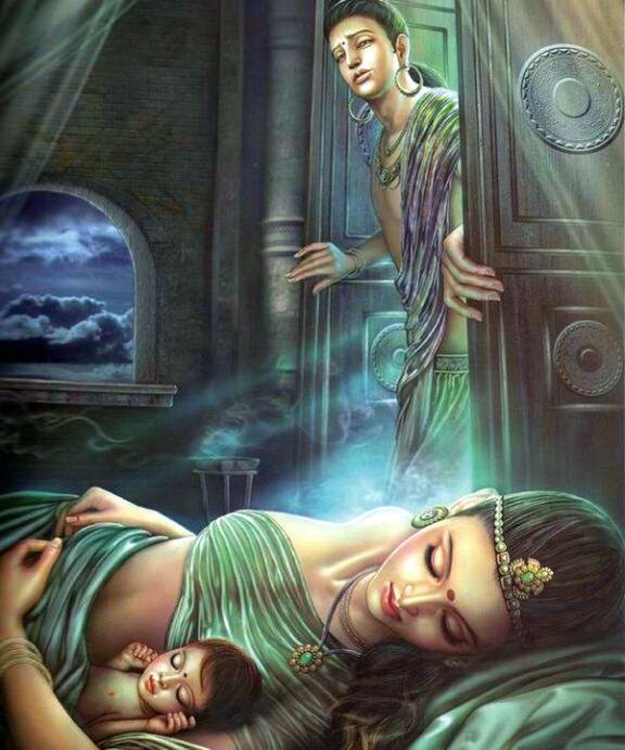 11夜别妻儿:一天夜晚,太子悄悄的走出房间,离开了妻子儿子。