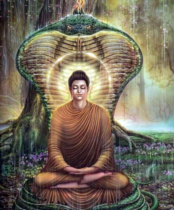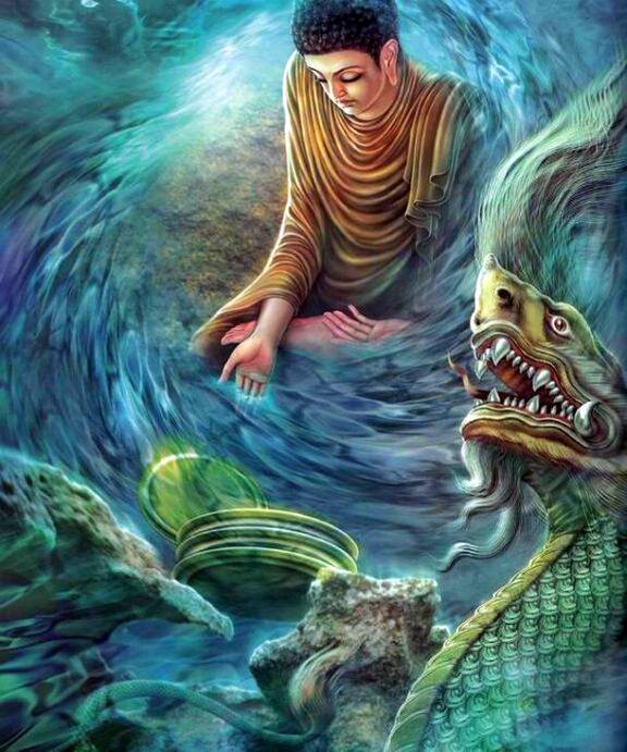 17树下参悟:佛陀于菩提树下参悟,发誓不成正觉不离此座。当雨水下落天气寒冷时,龙王现身为佛陀遮风挡雨。