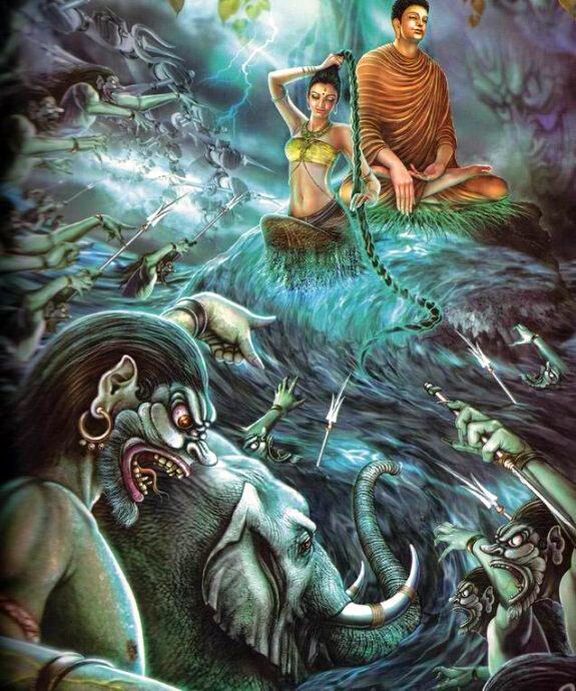 20魔军败退:魔王波旬的种种手段都没能得逞,终于败退。