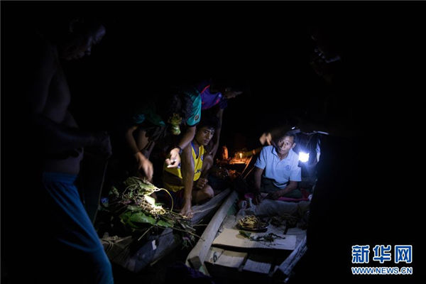 在缅甸北部实皆省,很多居民傍水而居,与自然和谐相处,依然保持着传统的生活方式。这是在缅甸北部实皆省的大麦地野生动物保护区,船夫们在下雨之前用传统方式抓蜉蝣(5月23日摄)。新华社记者 金立旺 摄
