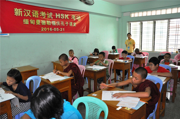近年来,缅甸兴起了“汉语热”,不少青年人开始接触汉语,学习汉语。除了华文学校,一些寺庙里的学校也开设了汉语课程。刘安经和同学们会作为志愿者去那里教一些贫困儿童和孤儿学习一些简单的汉语。