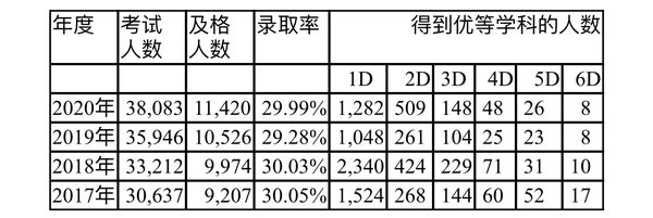 而在最后一次的2020年度的大学入学考试中,报名参加考试的学生有4万多名,当时官方报纸公布的考生人数如下表:、