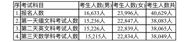 2020年度克钦邦大学入学考试人数统计表: