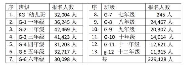 检查一下各年级的报名人数,小学阶段(一到五年级)各年级为3万多甚至到4万多人,初中阶段各年级报名人数为2万多人,高中阶段各年级报名人数为1万多人,班级越高报名人数越少,这不奇怪。但七年级这个班级报名人数却太少了,只有245人,是统计错误还是有其他原因不得而知。