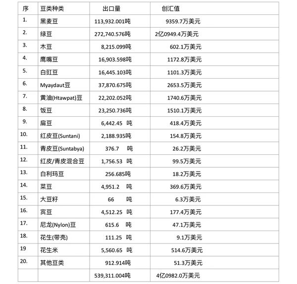 2022年4月1日至7月22日缅甸国家豆类出口情况: