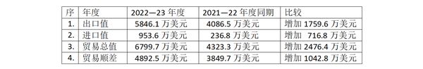 甘拜地边贸基地2022—23财政年度9个月半(自2022年4月1日至2023年1月16日)的对外贸易情况: