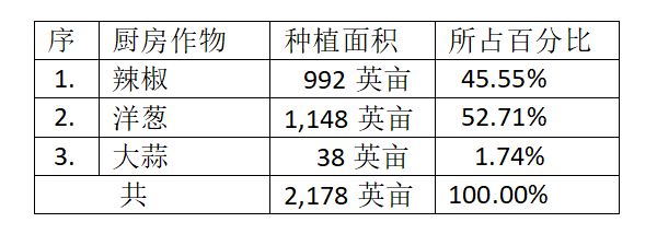 3种厨房作物中,以洋葱种植面积为最多,占全部厨房作物种植面积的一半以上。