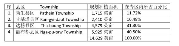 现冬作物种植季节期间勃生专区内的四个县区种植的各种冬作物面积如下表:
