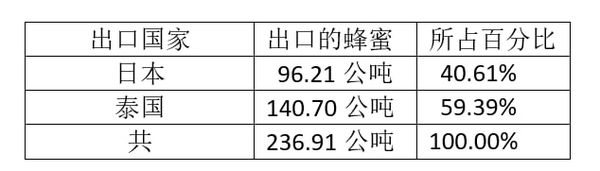 这样出口时,出口日本获得144,315美元收入,出口泰国获得211,050美元收入,故共获得355,365美元的收入,每公吨蜂蜜价钱平均为1,500美元。