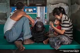 车厢里有卖水果卖报纸的,混杂着槟榔和黄香楝的气味,叫卖的人走过留下棉质衣服被汗水沾湿的味道。车窗外的热带绿植散发着蓬勃的生命气息,被风裹挟着,进入到车厢里,融入这个气味的大杂烩。车厢里,拄着拐杖的老大爷热心地重复提醒别的乘客小心地滑;把脚盘起来坐在座位上的大妈眯着眼养神;脸上仔细抹着黄香楝的小姑娘们小声耳语低头吃吃地笑;身上一丝不挂的小男孩儿追着一个破烂的玩具小车满车厢跑。在中途的一站,火车还没有停稳就看到坐在对面的大哥一个箭步冲到门口。跟着他看过去,一位头发花白、身材干瘪的老太太提着菜篮子颤巍巍从月台走到火车上来。同时冲向老太太的还有另外一个大叔,两位男士同时去扶她上车,热带的气息同样来自于缅甸人的善良热情。