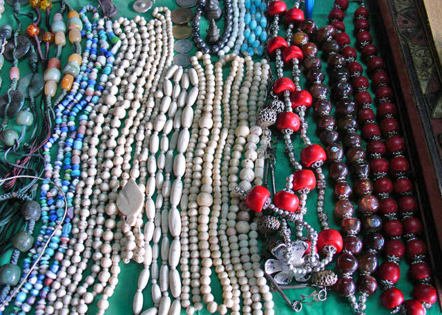 011用贝壳、玉石、植物种子制成的项链工艺品