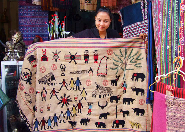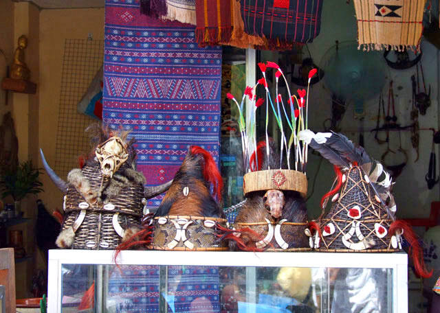 017仰光将军市场有售卖那加族的头饰纪念品小店