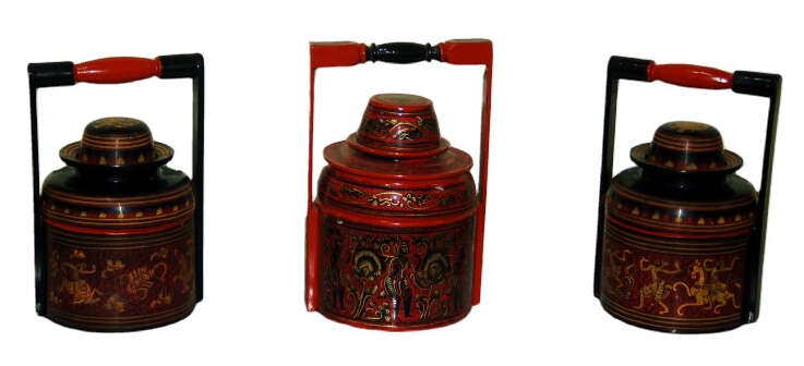 漆器品是利用钦敦河边产的一种竹、生长在掸邦地带的黑漆树的树脂、中国来的朱砂等用品配制而成的。