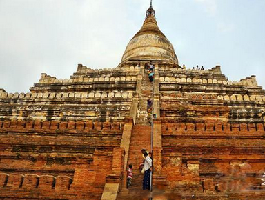 瑞山都塔被称为瞭望之塔,位于蒲甘平原中心靠南,是欣赏日出日落的绝佳之地。Shwesandaw的意思是“金色神圣的发舍利”,以供奉珍藏在塔内佑庇古王进贡的佛发舍利为塔名。