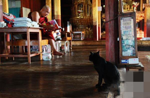 这是一间位在茵莱湖畔的木造佛寺,佛寺本身已有一百五十五年的历史,寺里有古董级的金身佛像、僧侣与二十几只猫。寺里的一位老僧侣,在参往小乘涅盘境界的某一日,偶然瞥见一只从身边跳开的猫,突发奇想的训练起猫儿跳圈圈的伎俩来。在僧侣的耐心训练之后,只要诱饵一出现,猫儿就在条件反射下,乖乖的纵身跃圈圈,而且越跳越高。训练成功之后,很快就传出了名气,甚至传到了海外。