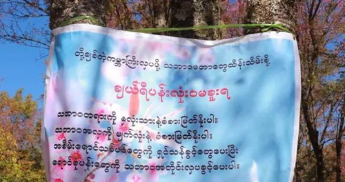 樱花树上,挂有一个小小的警示牌,写有不可盗摘樱花,乱扔垃圾,否则将罚款5000缅币。但是莱梅镇的民众却表示,虽然挂有警示牌,但相关当局并未严格监管。每个人摘走一点,最后就什么都不剩了,没有人进行监管,根本就起不到作用。