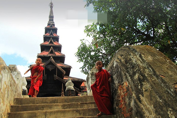 宝迦雅寺俗称“柚木寺',整座寺庙充满了缅甸的味道,是由267根柚木建造而成,最长的一根有18米,并因此得名。宝迦雅寺建于1834年孟既国王时期,经历战争却没有任何的损毁,建成到现在都没有翻新过。因为曾经是缅甸王室接受教育的地方,所以整个寺庙的雕刻十分精美细致,每一扇门窗,每一根柱子都雕刻着精美绝伦,栩栩如生的图案。图案里有人、花草和动物的。人物雕像多半是飞天,花草多为莲座,莲花,莲叶。动物图案则是猴子和狮子。在夕阳的照耀下,呈现了一种恬静和安宁的氛围。