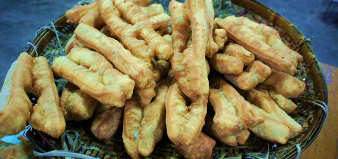 缅甸油条跟中国的很像,不过长度稍短,类似肯德基的,一般在早餐时间路边摊可以吃到,很多当地人搭配奶茶作为一天的第一餐。