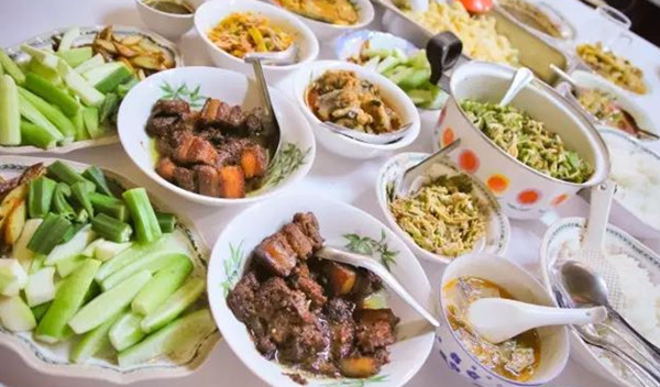 缅族人占缅甸人口的大多数,遍居于缅甸全国。遵照佛教习俗,缅人每日只进两餐,进餐时间约在上午9点与下午5点。由于缅甸是大米之邦,所以缅人素以大米为主食,菜肴很简单,惯以咖喱为佐料。