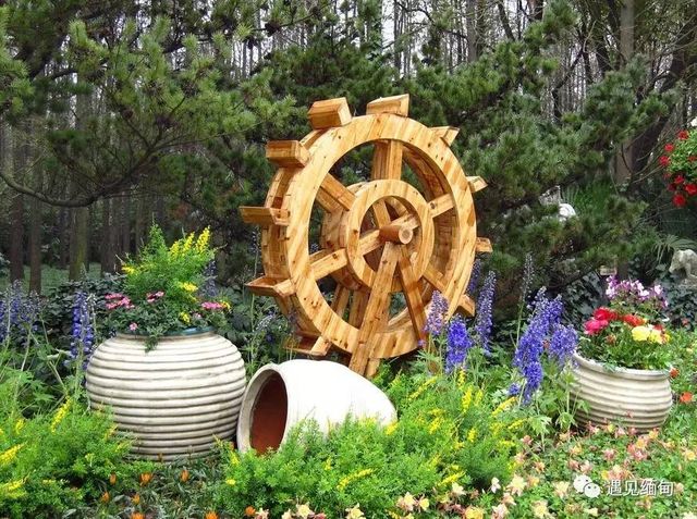 缅甸喜欢用土陶罐来装水,据说那样会使得水更清凉。土陶的透气性强,有利于在炎热里花卉的生长。故此娇媚艳丽的花儿也喜欢待在土陶的怀里。