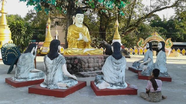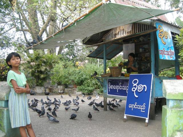 塔里面的一家喂鸽子的店,我说缅甸的女孩子不太漂亮吧!