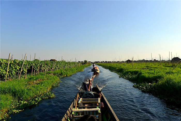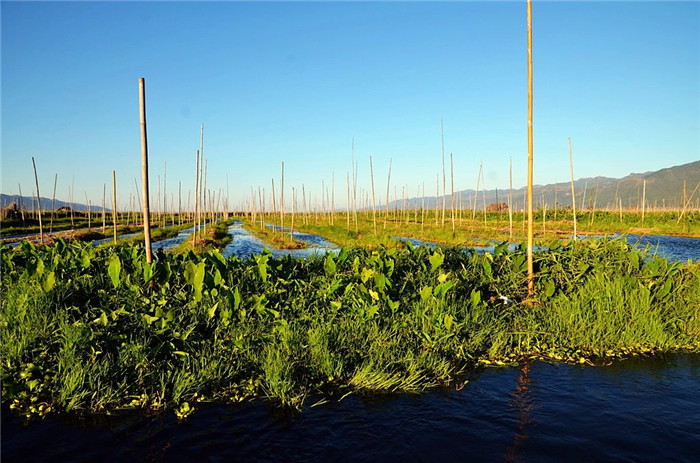 大大小小的浮岛形成了罕见独特的“浮岛村落”,也造就了绝对纯生态的“浮岛农业”。人们在大浮岛上开出一块块细长的条田,种植番茄、黄瓜、豆角等等蔬果。浮岛上水足土肥,各种作物生长茂盛。浮岛周围鱼群聚集,人们种地之余,还可以捕捞鱼虾。每到收获季节,湖区一派繁忙景象,车船满载各种蔬菜瓜果和水鲜,远销缅甸各地。