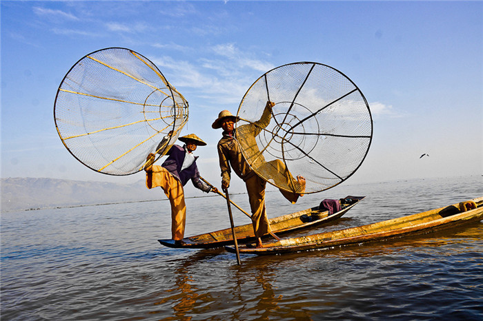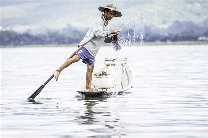 这个独特的传统划船方法,成为茵莱湖上一道亮丽的风景线。据传,世界上许多著名摄影师,就是为了专门拍摄茵莱湖渔民单脚划船捕鱼,而来到这里。