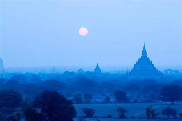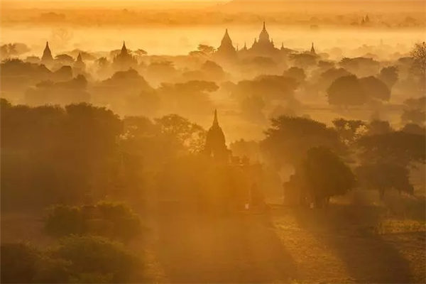 去过蒲甘的人常说,在这里,你可以看到最壮丽的日出和最绚丽的日落。试想一下,在清晨天未亮之时,借着残余的月光摸索而上,坐在佛塔上,任由清风拂面,耳边不时听到塔顶的华盖上悬挂着的铜铃摇动出清脆的响声;当太阳西下光辉渐渐,暗红的落日被云彩环绕,透射出夕阳之光打在塔身,荒凉的平原万籁俱寂,霞光万丈,远处有炊烟,烟雾缭绕,此生无憾……
