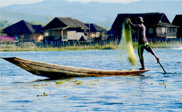 茵莱湖上的居民以船代步,从小练就了用脚划船的硬功夫。乘船遊湖,不时与单脚划船的湖上居民相遇。