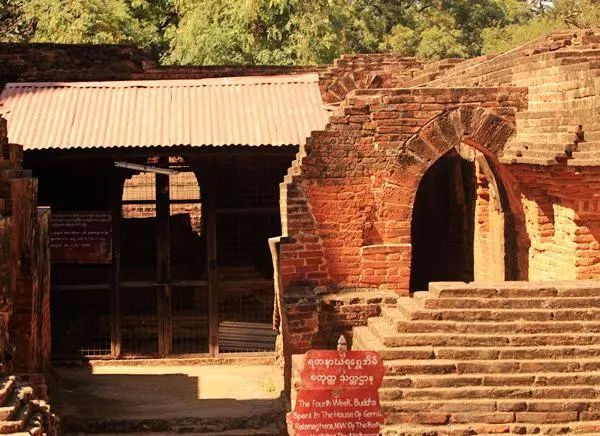 摩诃菩提寺,在瑞古意塔的北边,建于Htilominlo国王时期,是蒲甘唯一一座印度、孟加拉式建筑。以三角形的主塔为中心,四周围满了小型的副塔,塔座围着三层石刻佛像,塔身呈金字塔形,堆满了内凹形佛龛,里面都有佛像,密密麻麻,形态各异。MahabodhiTemple的建筑风格在整个蒲甘独树一帜,与众不同,非常容易辨认。在它之前的寺庙,佛像都是在塔里面,它之后的建筑逐渐受到印度文化影响,开始把佛像往外移。