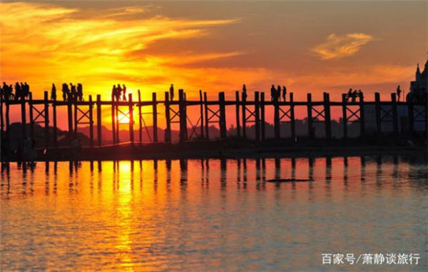 乌本桥白天实在太过普通,可是日落的景色却是最美好的样子,随手一拍便是一种自带大片的效果,最神奇的是在夕阳的照耀下,仿佛每一个从桥上走过的人都带有故事,让人有着无限的遐想。不过桥面的缝隙非常大,一定要小心自己的鞋子不要卡在缝隙里面,可以看一看四周,蓝天和白云映成水天一色的景致,倒是非常好看,桥下面还能看见马群在吃草。