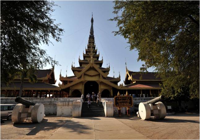 位于古城内正中央,原为缅甸贡榜王朝的皇宫,二次世界大战时被火焚毁。现在的皇宫是1989年缅甸政府开始依据历史图片和资料开始重建,1996年竣工并对公众开放。