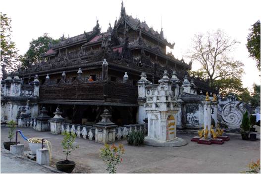 在曼德勒我们原本计划20日到23日晚离开去勃固,中间利用一天半的时间去蒙育瓦。后来得知蒙育瓦也有直达勃固的大巴车,所以我们决定22日早搭车去蒙育瓦,23日晚由蒙育瓦直接乘夜间大巴前往勃固。这样在曼德勒的头一天我们主要游览了市内的曼德勒皇宫、固都陶佛塔、等著名景点。