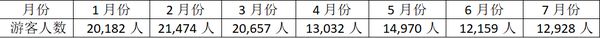 2018年全年到访的外国游客人数到达202,991人,入场费收入到达12亿缅元之多。而今年(2019年)1月份至7月份,每月的游客人数如下表: