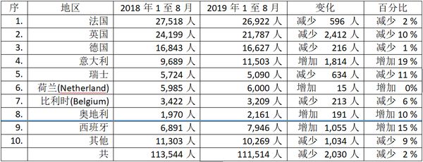 9月27日出版的《缅甸之光》报公布了2019年1月至8月份内进入缅甸的国外游客人数,这是根据劳工、移民暨人力资源部所提供的数据资源整理而得的。与去年2018年同期相比,游客人数变化情况如下: