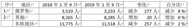 2018年头9个月及2019年头9个月进入缅甸的游客人数比较表
