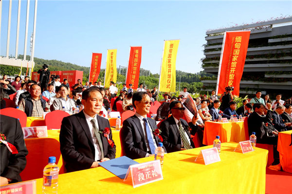 缅甸联邦共和国驻华大使苗丹佩,缅甸联邦共和国旅游部 前部长吴忒昂,缅甸联邦共和国旅游部前常秘吴奕孟,缅中友协名誉主席段正礼,原中联部副部长、第十一届全国人大 外事委员会副主任委员马文普,文化部原副部长、国家博物馆首任馆长潘震宙,三亚市人民政府副市长花兴,三亚凤凰国际机场有限公司董事长许惠才,德航集团董事长路平,空港百货董事长、缅甸国家馆馆长张为民等领导嘉宾和国际友人出席了开馆仪式。